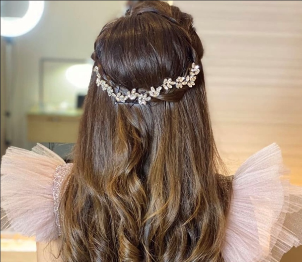 Your hair accessories should harmonize with your dress to create a unified and polished look. If your dress features intricate beading, lace, or embellishments, choose hair accessories that reflect those details. For example, a dress with pearl beading pairs beautifully with a pearl-encrusted hairpin or comb. If your gown is adorned with crystals, opt for hairpieces that incorporate similar sparkling elements. Conversely, if you’re wearing a simple and elegant dress, you might want to make a statement with a bold and glamorous hair accessory, such as a bejeweled headband or a dramatic tiara. The key is to ensure that your hair accessories enhance your dress without competing with it. By thoughtfully selecting pieces that complement your gown, you’ll achieve a balanced and aesthetically pleasing look that feels cohesive and well-considered.