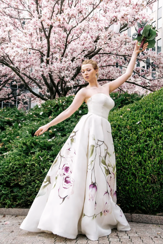 Floral painting and embroidery are blossoming on wedding gown trends in 2024. Delicate flowers cascading down the gown or bold botanical patterns add a touch of whimsy and romance. It’s like wearing a garden of love as you say your vows.
